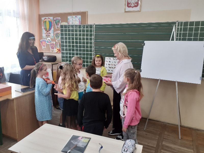 Na >>> Festiwalu Poezji w Przemyślu można było zobaczyć wystawę dużych wydruków prac Józefa Wilkonia do "Baśni o rumaku zaklętym". Obostrzenia wirusowe sprawiły, że dzieci nie mogły przyjść na Zamek, udałam się zatem do nich , do szkoły w mizernym zastępstwie góry udającej się do Mahometa. Warto było! Fragment baśni Leśmiana przeczytała oczarowanym gackom Dominika Ostałowska. Dostałyśmy od dzieci mega laurki.